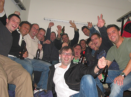 V.l.n.r. stehend: Jochen, Krafti, Shimit, Jensen, Böhm, Kuli, Alvir, kniend: Aless, Sventinho, Oude, Guido, Ansgar, Andi Ka.