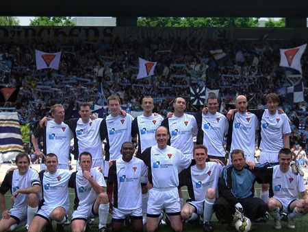 V.l.n.r. auf der Bank: Sverrisson, Tahir, Jörg, Stefan B., Jochen, Stefen K., Andy, Alessandro, Sale, Jürgen, Guido, Ansgar. Am Boden: Oude, Sventinho. Es fehlen: Alvir, Horny, Daniel, Kuli, Jens, Bert